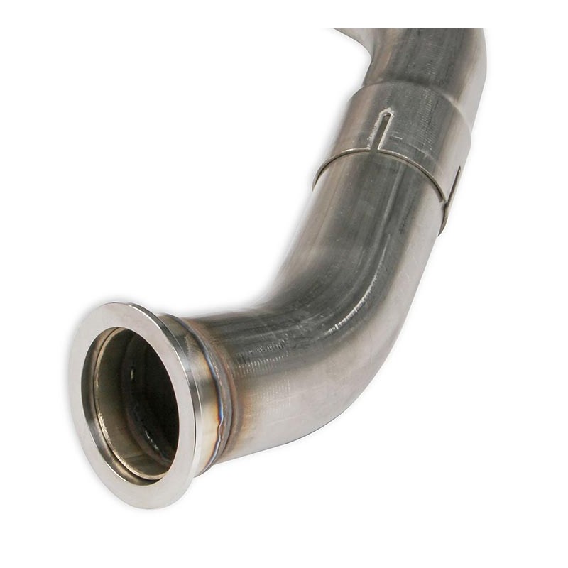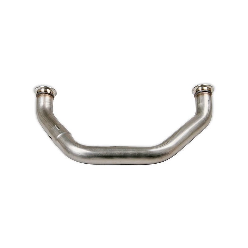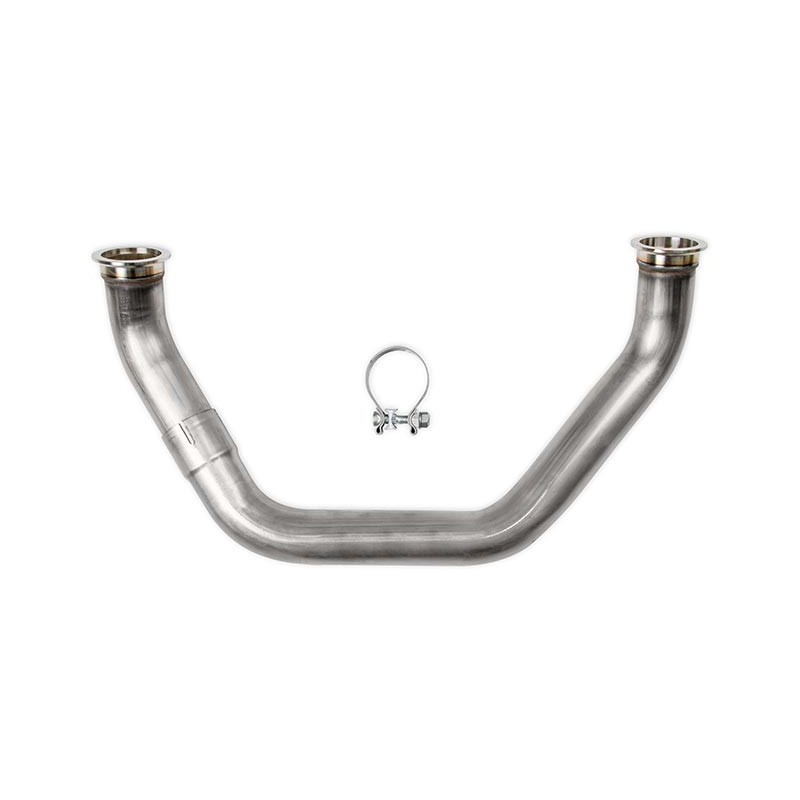 This turbo cross-over tube is used to connect the two manifolds (sold separately). Choose the cross-over tube based on the transmission (and bell-housing) for optimal fit and ground clearance. The cross-over tubes are made from 16-gauge, mandrel bent 304 stainless steel and v-band flanges welded on for an easy bolt-on fit. A universal cross-over component kit is also available for custom applications that need something a little different (requires fabrication and welding). These parts work with most common LS swap parts (i.e. motor mounts, swap oil pan, and accessory drive systems) and provide the basic building blocks needed to complete a custom turbo system for your GM LS engineFeatures:Cross-Over Tubes Are 16 Gauge, Mandrel Bent 304 Stainless Steel and Include V-Band FlangesPre-Made Cross-Over Tube Provide Optimal Fit and Ground ClearanceMandrel-Bent TubingTwo Piece Design