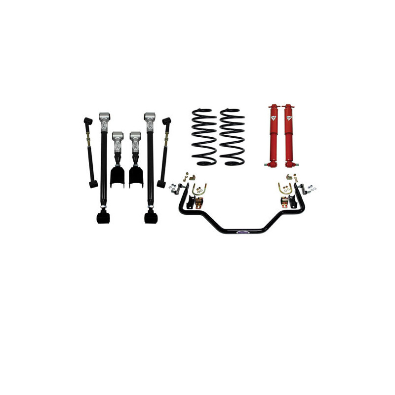 Detroit Speed and Engineering's rear Speed Kits are designed to make your El Camino or A body maintain optimum geometry and tire contact through the full range of rear suspension travel. Through the use of DSE's patented Swivel Links, the rear end housing becomes fully articulated, without the use of noisy spherical heim joints. The DSE tubular rear sway bar attaches to the chassis for a substantial improvement in cornering ability. This rear DSE Speed Kit is designed to complement the front DSE Speed Kit to give your pro touring El Camino contemporary handling and ride quality on par with the latest modern muscle cars.Speed Kit 2 Contains:Patented Swivel Link Rear Control ArmsDSE Chassis Brace KitDSE Rear Coil SpringsKoni Classic ShocksDSE Tubular Rear Sway Bar Kit