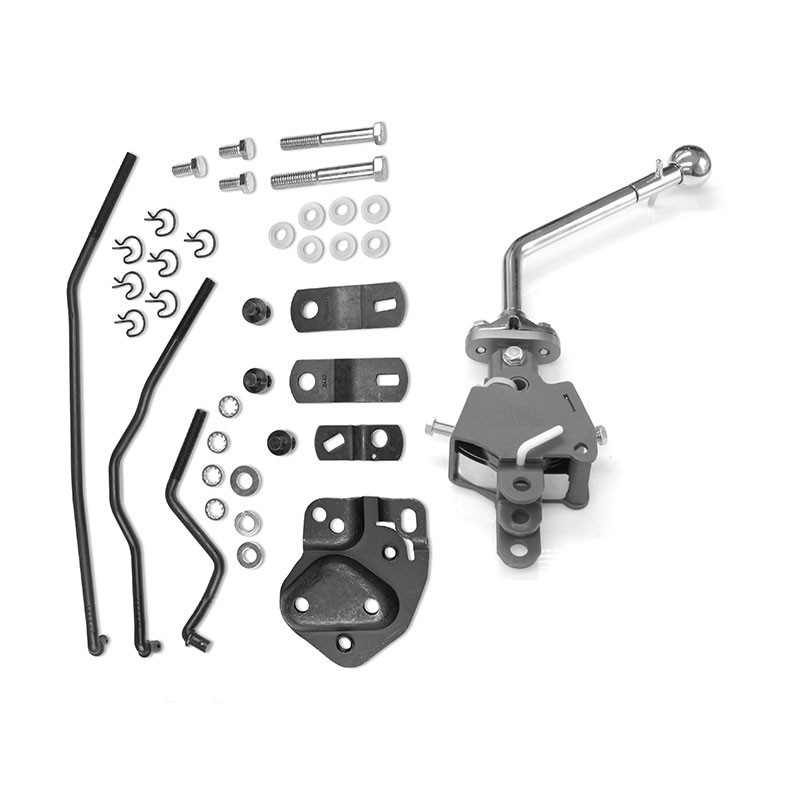 This Ground Up exclusive El Camino Hurst/Muncie shifter kit allows you to keep an original style Muncie shifter handle and mate it to a Hurst shifter and linkage. Original Muncie shifters performed very poorly, so we created this exclusive kit to keep your El Camino looking original while utilizing the strength and reliability of a bullet proof Hurst Competition Plus shifter. Everything under the shifter handle is covered by your shifter boot so no one will be able to tell it isn't stock.