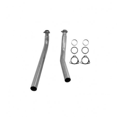 Flowmaster's manifold downpipe kits are designed for the person who wants to use a Header-back exhaust system while using the factory exhaust manifolds. Utilizing mandrel bent 409S stainless steel tubing and high quality flange gaskets, Flowmaster's manifold downpipe kits are designed for the perfect leak free fit.Features:Pipes designed to be used without heat riserChevrolet Big Block, GM A-Body, B-Body and F-Body2.50 in. manifold downpipeMandrel bent 16 gauge stainless steel tubing