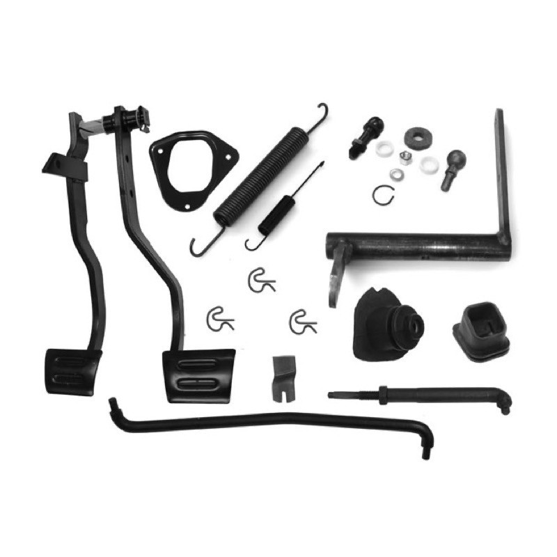 If you are planning on swapping from an automatic to a 4 speed manual transmission, Ground Up's El Camino manual transmission clutch linkage conversion kit takes all of the headache out of the swap! This complete kit includes the brake and clutch pedals, Z bar, rods, boots, cross shaft kit, springs, bracket, and all of the hardware to do the job right the first time.This kit is also a great value if your original clutch linkage and pedals are in need of replacement!Kit Contains:(1) Small Block Clutch Z Bar(1) Clutch Firewall Rod(1) Firewall Rod Boot Retainer(1) Firewall Rod Boot(1) Clutch Rod Clip Kit (3pc)(1) Clutch Cross Shaft Kit(1) Clutch Fork Boot(1) Clutch Adjustment Rod Kit(1) Clutch Return Spring(1) Clutch And Brake Pedal Assembly(1) Clutch Z Bar Frame Bracket