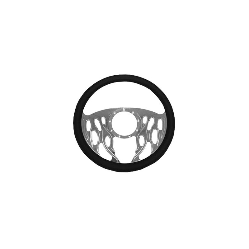 1964-1987 El Camino Leather Grip Chrome Plated Aluminum Steering Wheel, Half Flames Style 14 Inch GCS-S5618