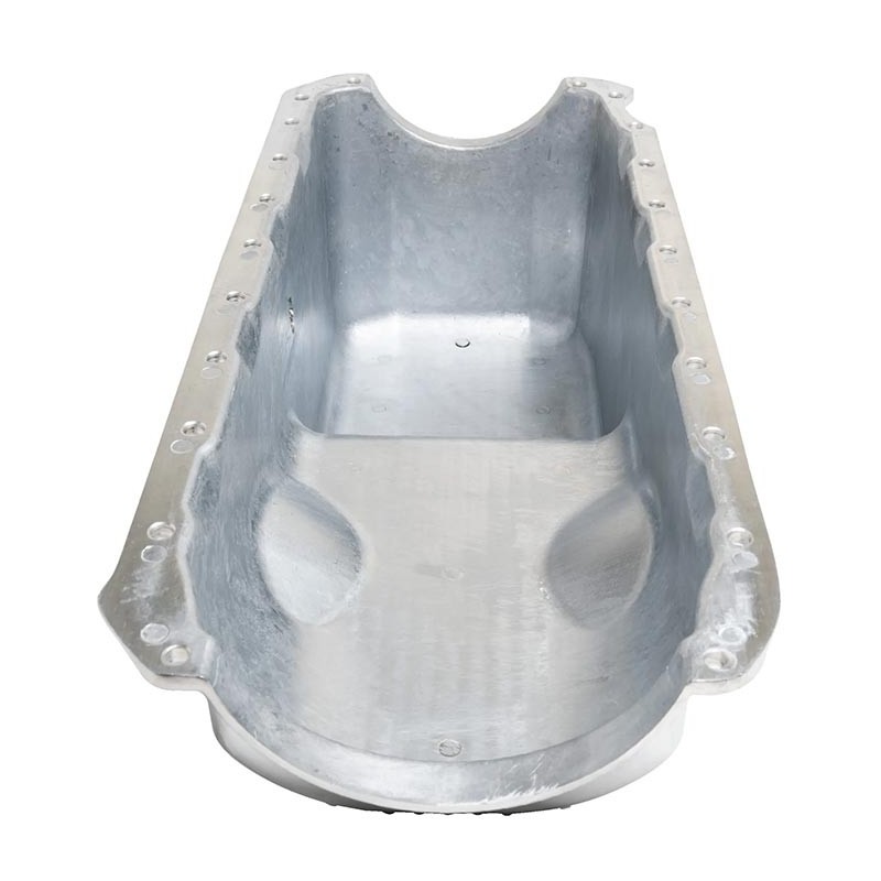 Big block 396-454 Gen 4 oil pan designed for engines with 2-piece rear main and passenger side dipsticks. Constructed from high quality cast aluminum and made to meet or exceed OEM specifications. Kits include new drain plug and mounting hardware. Features:Fits 2-pc. rear main seal blocksPassenger Side DipstickOEM CapacityUses OEM Oil Pan Pickup