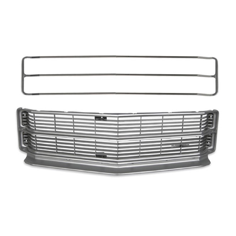 Since replacing just the grille or only a couple of moldings will make the not so good ones stand out like a sore thumb, replacing the grille and all moldings with these high quality reproductions is an excellent idea! This kit includes (1) grille, (3) center grille moldings, and (2) outer grille moldings for a complete refreshening of your front end! Not only does it include everything you need, it also saves you a ton of money rather than buying all of the pieces individually over time!Kit Contains:(1) Grille Molding Kit Complete(1) Grille Silver