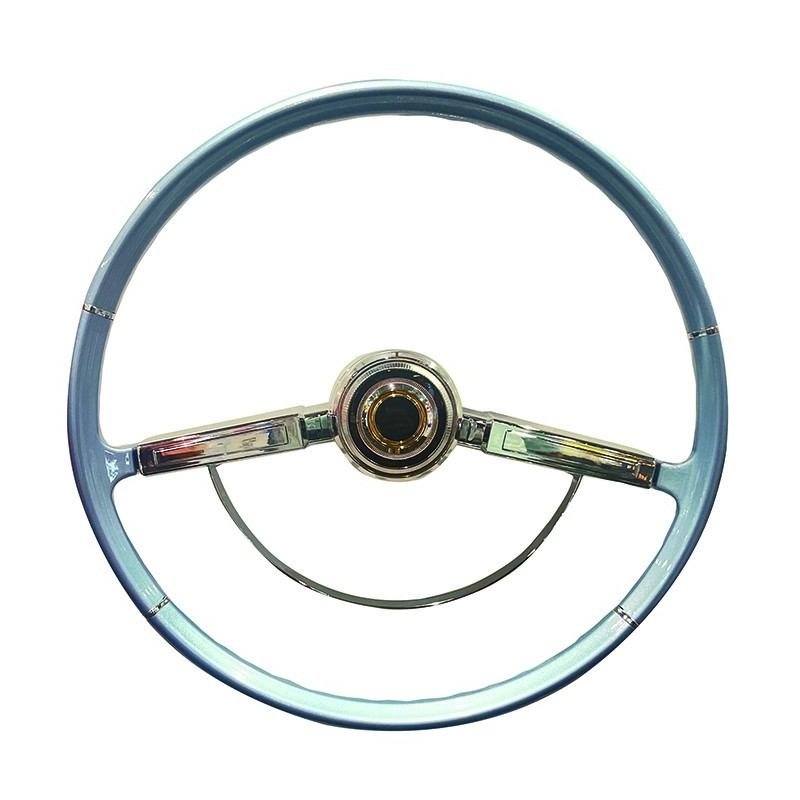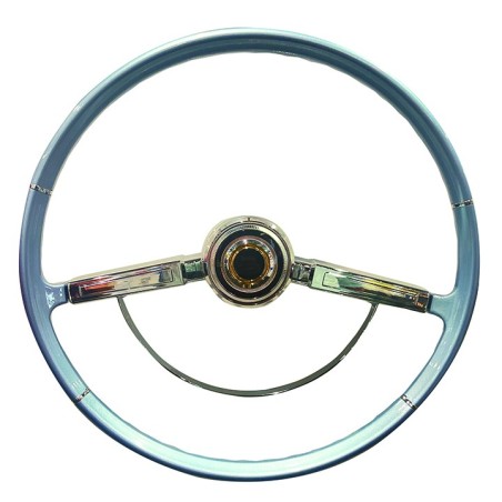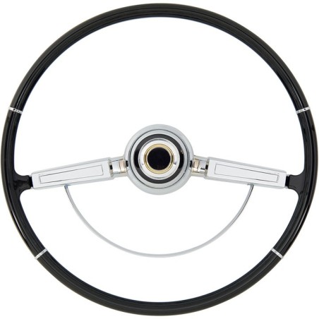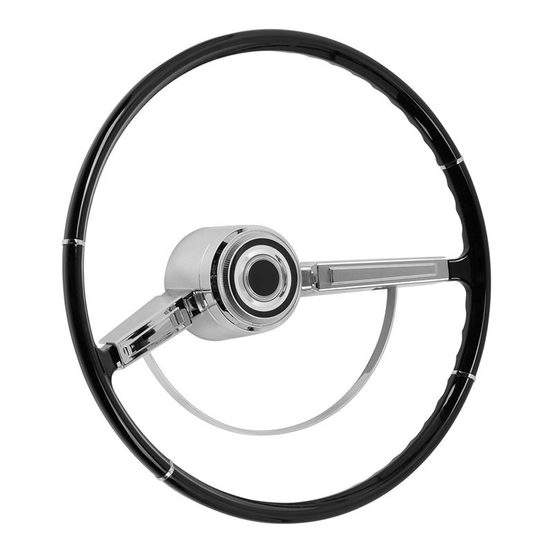 This 15-inch American-Retro steering wheel replaces the original 17-inch stock GM wheel from your 1966 El Camino. This sporty replacement gives your car an original look, yet provides drivers the comfort and handling of a 2-inch smaller diameter modern size wheel, a benefit especially for cars converted to modern power steering. Don't wrestle with that bus-size steering wheel any longer! American-Retro's new smaller steering wheel is the answer! Made to fit to the original steering column using all the original horn, nuts, and turn signal switch parts. The American-Retro wheel comes complete with a chrome horn ring and a center cap. Installation is easy - just bolt it on! Finished in black. For other colors, simply paint to match your vehicle.Features:15 inch diameter (compared to 17 inch originals)Original look and feel without the Original sizeFits original steering columnsUses original horn, hardware, and turn signal switch partsSporty and comfortableIncludes chrome horn ring and emblem