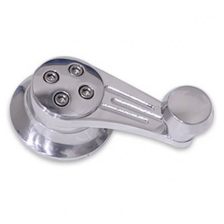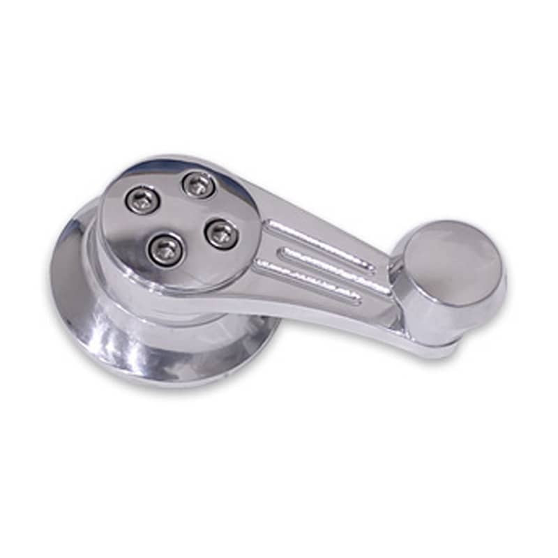Eddie Motorsports' new Billet Aluminum vent window cranks are both beautiful and functional. With a thicker configuration, our handles have a more solid feel than the 'petite' street rod style cranks that are currently available. The vent window cranks are 3-3/4 inches long and include a billet knob. The cranks feature a base that is 2 inches in diameter to cover the upholstery cutouts from most existing OEM cranks. The Eddie Motorsports vent window cranks feature a heavy duty brass 16 spline insert that is compatible with GM and Ford applications (such as Chevrolet El Camino) and prevents wearing out and stripping, a common occurrence with original and imported pot metal cranks. The billet vent window cranks are available in four distinct styles and come in a variety of custom finishes. Sold in pairs.