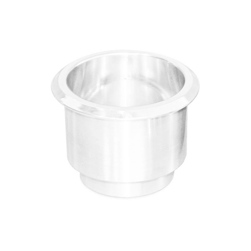 These high quality drink holders are CNC machined from a solid chunk of 6061T6 aluminum. Cut-out size is 3-3/8 inches and they are 2-13/16 inches deep. The outer mounting flange measures 4-1/8 inches diameter.