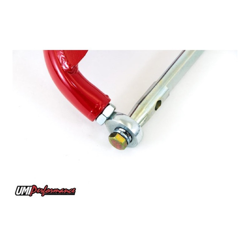 UMI's 3056 adjustable upper a-arms are designed to excel in Pro-Touring, road race, auto-x and hot street corner carving. The race quality rod ends provide shim-free camber and caster adjustment along with ultimate smooth travel. This arm features a relocated ball joint pad to increase caster and improve stability and steering feel as well as a shortened cross shaft to ball joint distance. We recommend the 3056 arm for all racing applications. Arm includes 1/2 inch taller ball joints for improved camber curve. 100% manufactured, tested and raced out of Philipsburg, PA USA.Features:Relocated ball joint pad for increased caster and improved steering feel without excess shims1/2 inch taller ball joint for improved camber curveCNC laser cut ball joint mounting pad0.120 in. wall thickness, 1.250 in. diameter DOM tubingTIG welded for superior strength and clean looks4130 chromoly cross shafts, CNC machined & zinc platedPolyurethane bump stops includedTravel limiting bolt compatibleDirect bolt-in compatible with factory or UMI lower a-armMay also work in conjunction with other lower a-arms and/or spindlesPackage includes recommended alignment specs and detailed installation instructionsDesigned, tested, manufactured and raced in Philipsburg, PA - USA