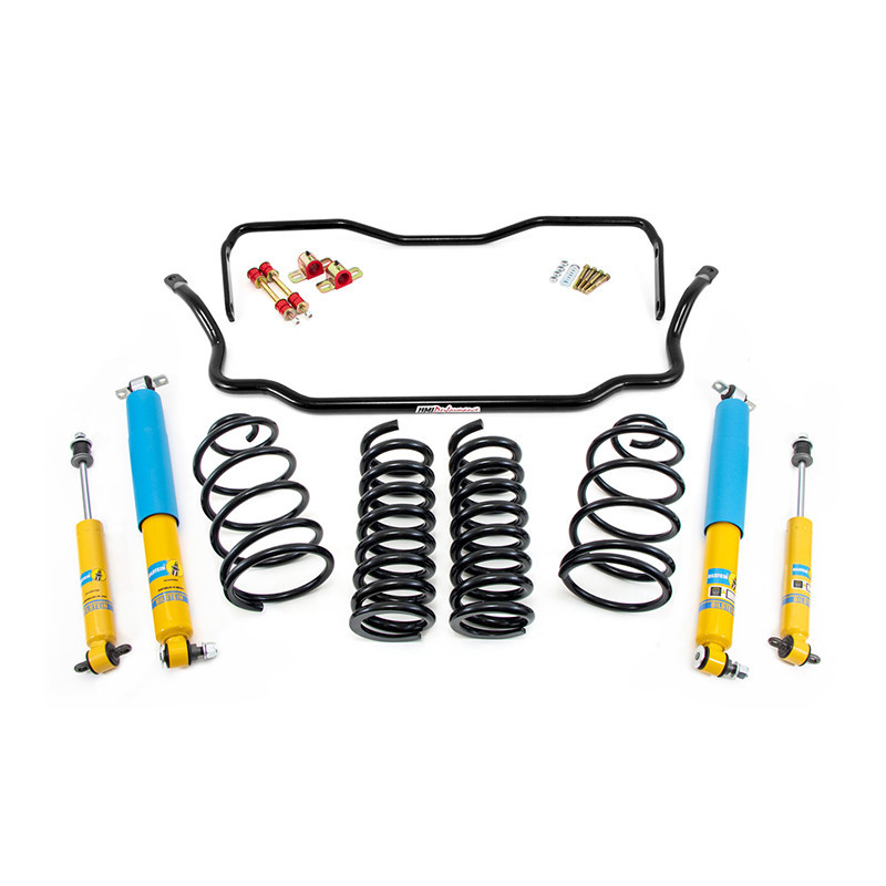 Looking for performance handling but like the old school factory look? The UMI Stage 1 kit now featuring factory height is designed to offer both! The Stage 1 is perfect for the El Camino owner who wants a simple and effective suspension upgrade with real handling improvement all while maintaining the factory muscle car look. This kit includes our trusted front sway bar and rear sway bar combined with performance designed coil springs and UMI monotube shocks. The sway bars reduce body roll and provide a nice balance when handling at the limit. UMI's 530 lb/in front springs and 130 lb/in linear springs are precision wound from premium CrSi wire and feature medium stiffness to control body movement and reduce floating found with factory springs while still providing a comfortable ride. The UMI monotube shocks feature a large diameter piston and nitrogen charge to dampen bumps and provide a crisp feel without being harsh. The shock is configured with heavy-duty mounts to ensure durability and fits in the stock location. Choose UMI's Stage 1 as an excellent step to transforming your A-Body into a capable daily driver or corner carver. Every component in this kit, as with all UMI products, is Made In USA.UMI's Stage 1 Handling Kit Includes:UMI-4035 - Heavy duty 1-1/4 in. CrMo front sway bar with new bushings & endlinksUMI-4034 - Solid 1 inch heat treated CrMo rear sway barUMI-4048 - 530lb/in front springs, 130 lb/in rear springs. Premium CrSi constructionUMI-S42030 - Front and rear monotube shocks featuring medium compression and medium/high rebound for comfort combined with performance