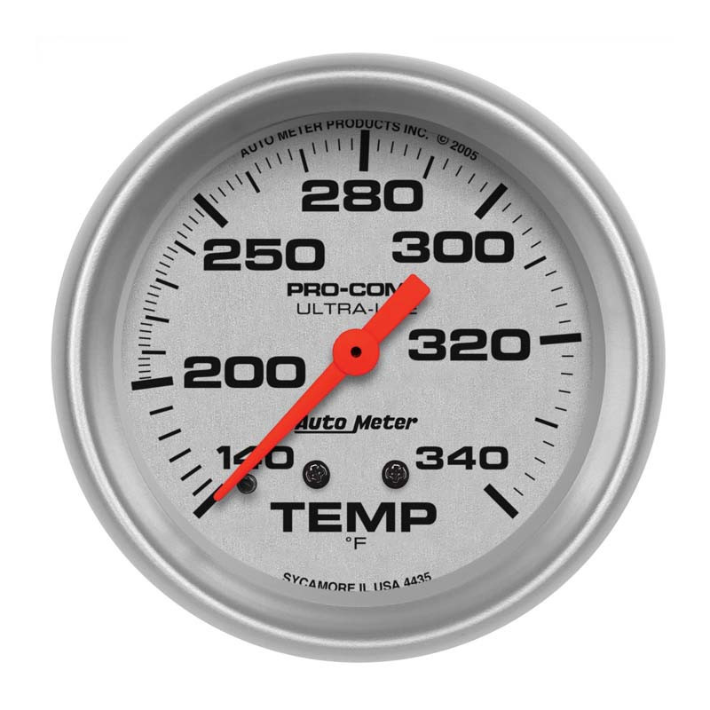 Get a gauge on your Grand Prixs temperature. Whatever temperature source you need to measure, AutoMeter's Mechanical Temperature Gauges will provide you a highly accurate, bullet proof reliable solution. The bourdon tube meter movement used in this gauge is engineered to function in even the harshest conditions and no electrical connection is needed for operation. A 6 Capillary tube and 1/2in. NPT mounting nut are included. Features:Traditional incandescent lighting illuminates around the perimeter of the dial AutoMeter's race proven mechanical instruments provide trusted accuracy while being simple to installNo electrical system required for gauge operation - compatible with every street or race vehicle Mechanical movements provide accuracy and durability even in the harshest environmentsGauge kit includes 1/2in. NPT adapter, bulb and socket assembly, red and green bulb covers, mounting hardware, and detailed instructions for installation