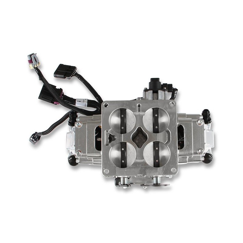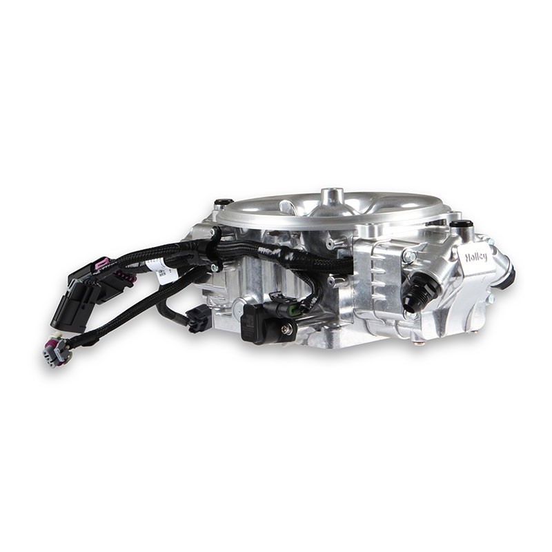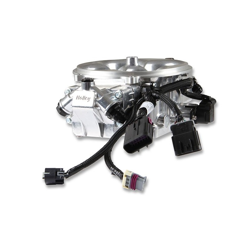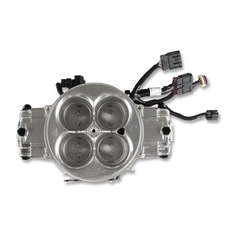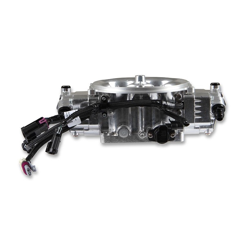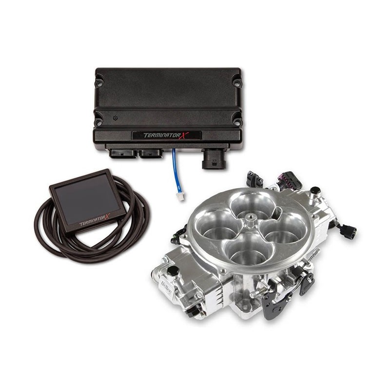The Holley EFI Terminator X Stealth 4500 EFI system from Holley features 8, 100LB/HR Fuel Injectors capable of supporting up to 1500 HP naturally aspirated or 1250 HP on forced induction applications. The Holley EFI Terminator X ECU is capable of fuel map self-learning and ignition timing control, improving idle stability, drivability, and wide-open throttle horsepower! Designed to fit with Gen 3 Ultra Dominator air cleaners and fuel crossovers, allowing you to easily convert your 4500 equipped 800+ horsepower dragster or door car!Features:Bolt on 4500 Flange Carburetor ReplacementSupports up to 1500 HP Naturally Aspirated or 1250 HP Forced Induction with Eight 100 Lb/Hr Injectors2.125” Throttle Plates, Flow 1440 CFM for large cubic inch enginesGen 3 Ultra Dominator Style 4 Bolt Air Cleaner Flange offering a variety of air cleaner optionsExternal fuel pressure regulator required, such as 12-848Integrated ignition timing controlHigh Resolution Full Color Touchscreen for Initial Setup, Tuning, and Gauge DisplaysSimple Calibration Wizard (answer a few questions about your engine and it creates the base map, then starts tuning on its own!) - NO laptop required!Self-tuning ECU means you don’t have to be a computer/tuning wiz to have EFI!OEM Style TPS/IAC, for years of dependable service.Included weld-in O2 sensor bung for the exhaust ensures a leak free oxygen sensor installationBuilt in 1bar MAP Sensor, vacuum hose adapters included (1/8th – ¼ and 3/16ths) - or for Boosted applications, you can disable the internal MAP sensor, and utilize an external MAP Sensor, the harness comes with the connector terminated, making the installPlug and play with Holley EFI Accessories, such as the 12.3” and 6.86” Pro Dash; CAN EGT; and Digital Analog style EFI gaugesAvailable in 2 finishes, Shiny and Black