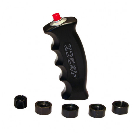 CNC machined from solid billet aluminum and anodized in black finish, the Hurst Pistol Grip Shifter handle is designed to provide a firm comfortable natural grip when shifting, allowing less chance of your hand slipping and missing a shift. Now with snap action for instant activation, this handle is ideal for use with Hurst Roll/Control, trans brake, nitrous oxide systems or other 12 volt accessories.