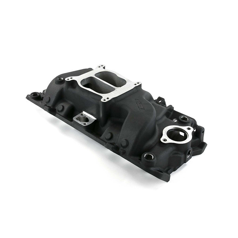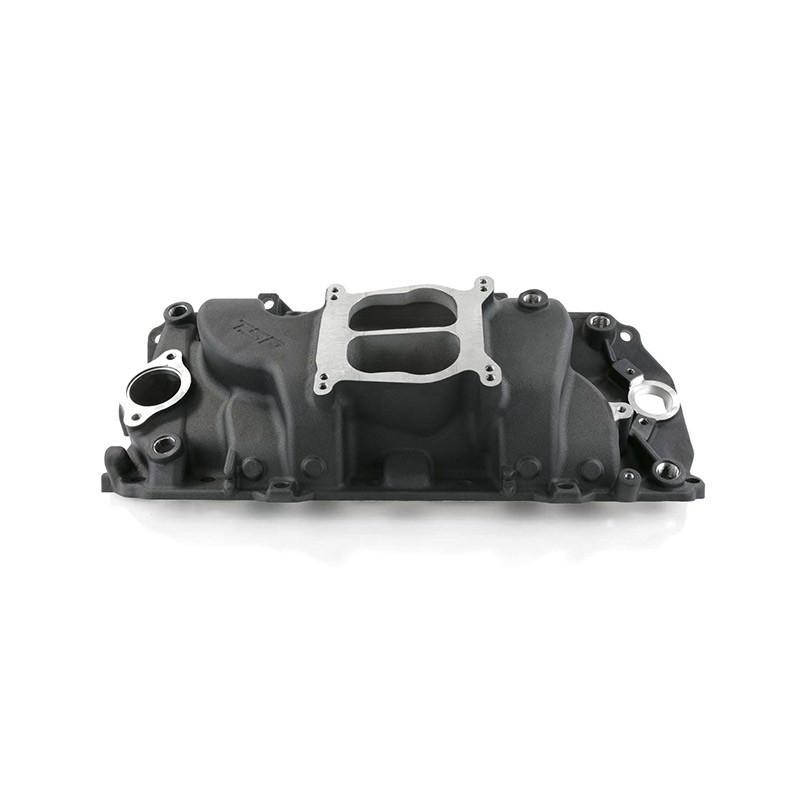 TSP's dual-plane high-performance intake manifold for the big block Chevy is ideal for street performance Grand Prixs, with a design that improves throttle response, as well as power and torque over a wide rpm range - idle to 6,000. It is cast from lightweight aluminum and features a low profile for ideal hood clearance. Additional provisions include dual distributor hold-downs, 4 corner water ports, and a choke block-off kit. Set up for spread bore carbs, this manifold comes with an adapter plate and gasket for use with square bore types.Features and Specifications:Engine Block Style:OEM Standard DeckCarburetor Quantity:1 (Not Included)Intake Style:Dual PlaneBasic Operating Range:Idle to 6,000 RPMManifold Height:5.75"Manifold Material:AluminumManifold Finish:BlackEGR:NoIncludes:Choke Block-off KitSquare Bore Adapter Kit