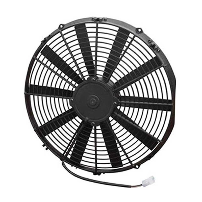 SPAL electric fans and accessories are built to meet the most rigorous cooling requirements needed for today's high performance automotive applications. SPAL fans are durable, reliable, and the choice of many NASCAR teams. SPAL offers a variety of high performance fans perfect for your motorcycle, ATV, automotive, and/or oil cooler applications. Manufactured from sturdy plastic, individually balanced for long service life, and most feature a fully sealed waterproof/dust proof motor for reliable performance in the most extreme conditions. SPAL fans can be mounted to any radiator with universal brackets and shrouds.Key Features:1604 CFMPull Fan DesignStraight Style BladesLow Profile Motor DesignHeight; 16.30inWidth; 15.75inDepth; 2.48inFeatures fully sealed motor to IP68 standards making them waterproof/dust proof12V