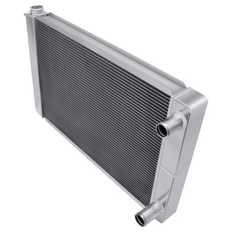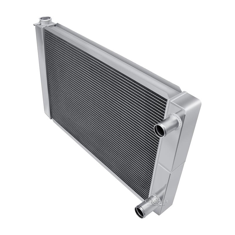 Champion Universal Radiators. These are 3-Tube Cores designed for the Do-It-Yourselfer who can create their own mounting system in their vehicle. These are 'Race Ready', and are made without provisions for a Drain Petcock or a Transmission Cooler. Three Hose Configurations to fit a multitude of engine applications double-pass design. Great for the track or the street in a very budget-friendly pricing package. These include our standard polish and a radiator cap, as well as a vent fitting on the filler neck.IncludesCORE DIM (H x W): 18 x 26OVERALL (H x W): 20 x 31I 3 ROW CORE THICKNESS: 2 1/4 Inch 3 ROW TANK THICKNESS: 3 Inch HOSE LOCATIONS: In - Passenger / Out - PassengerHOSE FITTINGS: In -1 1/2 Inch - Out -1 3/4 InchTRANS COOLER: Not availableMOUNTING TYPE: Universal fit saddle mount)3 Row - Three Rows of 5/8 Inch Tubes = Approx. 600-800+ Horsepower Cooling Capacity.
