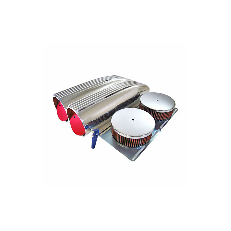 Built to fit 5 1/8 inch neck carburetors only, this aluminum shotgun hood scoop creates a street machine look. They can be mounted sideways or at an incline for use with single 4-bbl or dual 4-bbl carbs or 4-bbl throttle bodies. Washable element & hardware included.