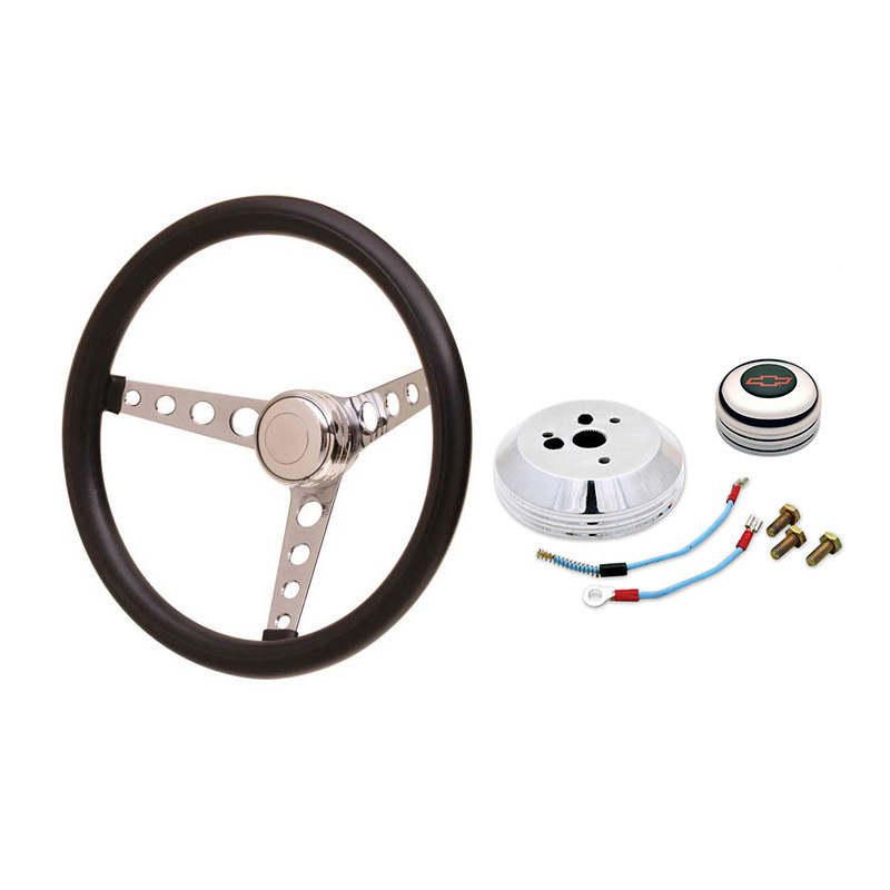 THIS WHEEL KIT INCLUDES A CHEVY BOWTIE LOGO HORN BUTTON. ADDITIONAL STYLES AND DESIGNS ARE AVAILABLE SEPARATELY.