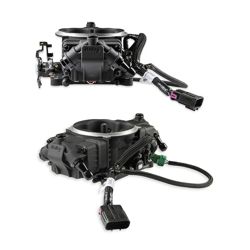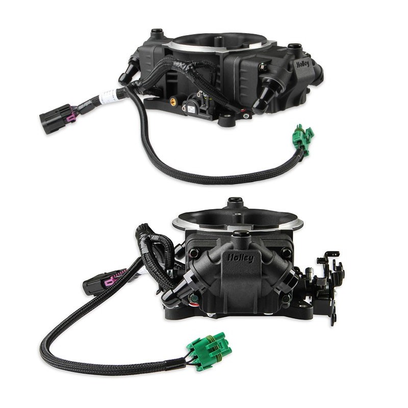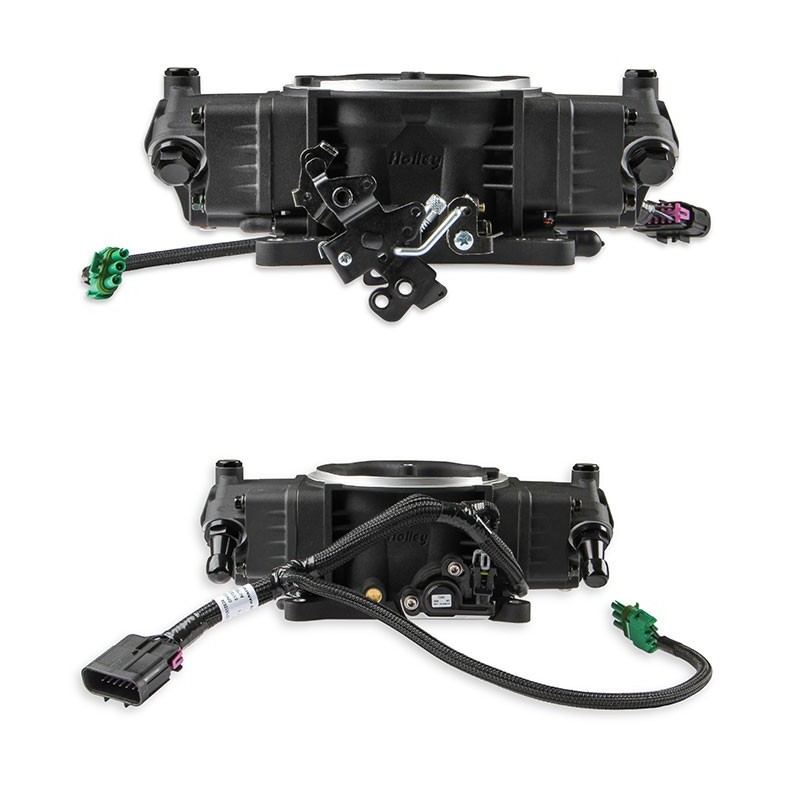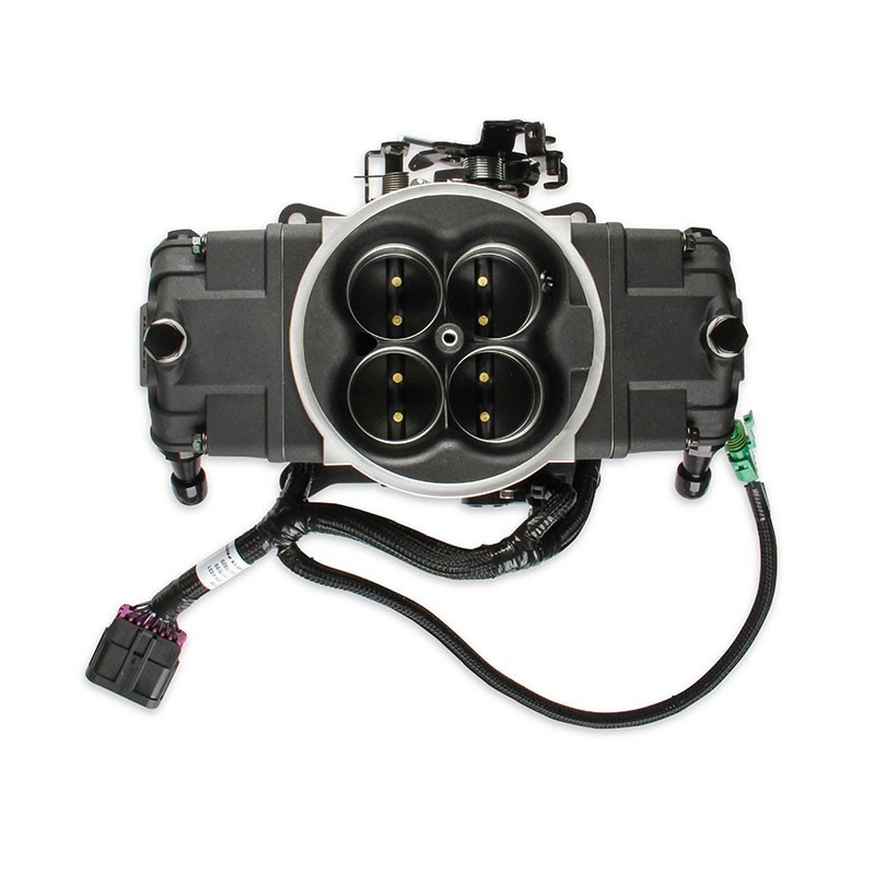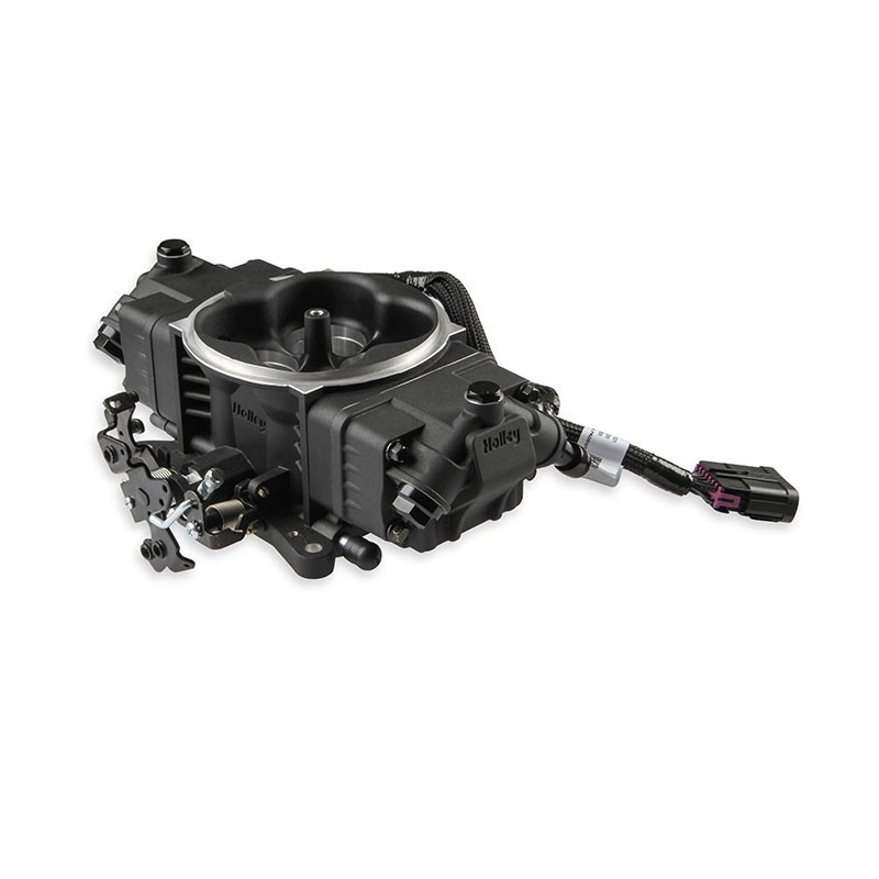 The Holley EFI Terminator X Stealth 4150 1250HP EFI system from Holley features 8, 100LB/HR Fuel Injectors capable of supporting up to 650 HP naturally aspirated or 1250 HP on forced induction applications. The Holley EFI Terminator X ECU is capable of fuel map self-learning and ignition timing control, improving idle stability, drivability, and wide-open throttle horsepower! Did we mention that the Stealth 4150 also includes transmission kick down provisions for GM TH350/400, 200R4/700R4 and Ford C4/C6 applications? Holley EFI Terminator X Max Stealth 4150 kits provide transmission control for Pre-1978-1983 GM 4L60E/4L80E Transmissions (Part numbers 550-1014, 550-1015, 550-1016)Features:Bolt on 4150 Flange Carburetor ReplacementContains 8, 100LB/HR Fuel Injectors capable of supporting up to 650 HP naturally aspirated or 1250 HP on forced induction applicationsHolley EFI Terminator X Max Stealth 4150 kits provide transmission control for Pre-1978-1983 GM 4L60E/4L80E Transmissions (Part numbers 550-1014, 550-1015,550-1016)Internal 1bar MAP sensor, built into the Holley EFI Terminator X ECU.All of the wiring exits below the rear fuel injector cover, for a completely stealth installationTimed spark port for vacuum advanced distributors located under the front fuel bowl, for easy access to the distributorAir entry is machined to fit most stock style air cleaners with air cleaner locator provisionsExternal fuel pressure regulator required, set to a base pressure of 58.5 PSI, such as Holley part # 12-886Integrated ignition timing control improves idle stability, fuel economy, and wide open throttle performanceHigh Resolution Full Color Touchscreen for Initial Setup, Tuning, and Gauge DisplaysSimple Calibration Wizard (answer a few questions about your engine and it creates the base map, then starts tuning on its own!) - NO laptop requiredThe included Genuine Bosch LSU 4.9 Wideband Oxygen Sensor provides real-time Fuel Map LearnOEM Style TPS/IAC for years of dependable serviceAvailable in 3 finishes: Shiny, Black, and Gold