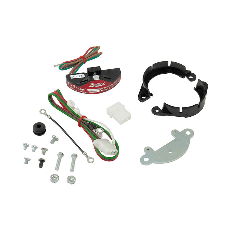 Put an end to high maintenance Point Ignition Systems by installing a proven Mallory E Spark Ignition Conversion Kit. By utilizing specialized electronic circuitry and a infrared signal, ignition timing is stable from 1 RPM through 10,000!FeaturesMore accurate ignition timing than any other type of system period!Improves performance and fuel efficiencyEasy to install with simple hand toolsLatest Thermal Clad based surface mount construction for maximum dependability and long lifeReduced maintenance