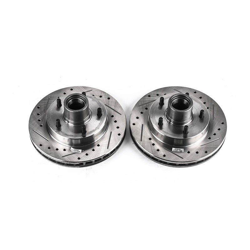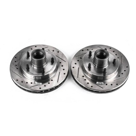 PowerStop drilled and slotted rotors provide a bolt-on upgrade for improved brake cooling and performance. Precision cross-drilled for maximum cooling and maximum performance during extreme conditions. The rounded slots sweep away gas, debris, and moisture to keep a clean friction contact patch on the rotor surface providing smooth, safe braking. Silver zinc dichromate plating resists rust and corrosion. With a direct OE fit, there are no special modifications needed. Upgrading the looks and stopping power of your vehicle has never been easier.Includes:Drilled & Slotted RotorsPlated using Silver Zinc-DichromateBeveled Drill HolesRounded Slots