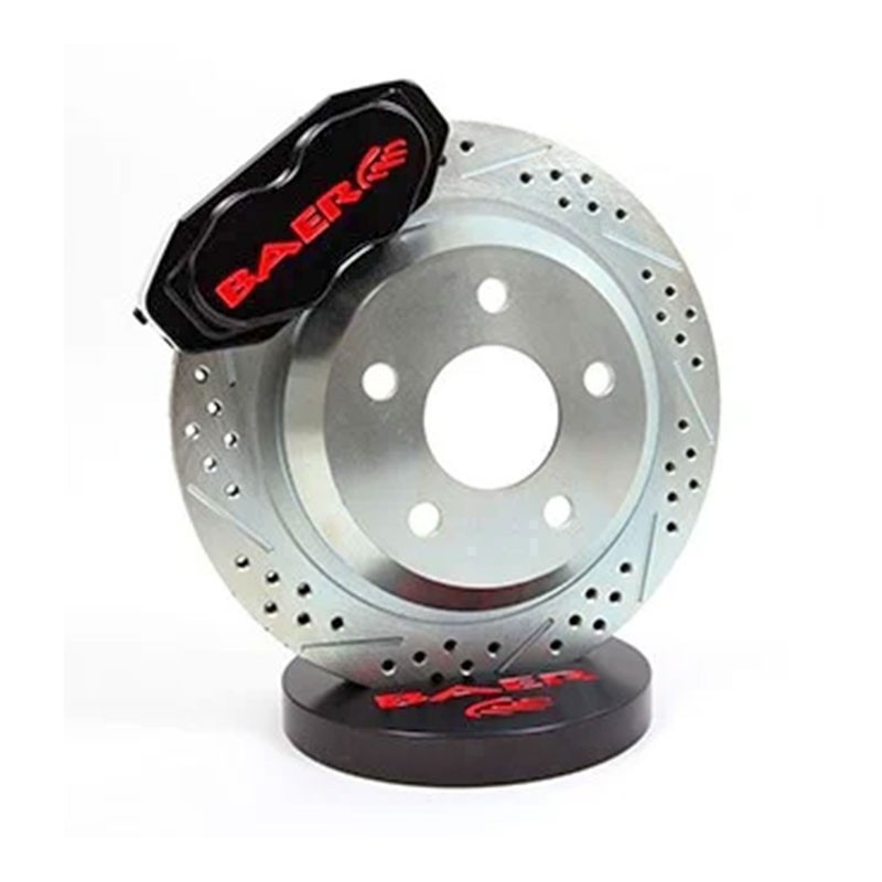 If you are looking for some serious stopping power for your 1978-1988 G-body, Baer brakes has you covered! This system features the S4 4-piston caliper mounted to a 12 inch, 1 piece slot, drill, zinc plated rotor. The S4 caliper has D.O.T compliant dust and weather seals and uses the popular DR1 or HB100 pad type. Baer�s unique backing plate not only acts as a caliper mount, but also houses a modern 1-piece park brake shoe assembly. Stainless braided hoses are also included. The 12 inch SS4 fits most 16 inch or larger wheels. Rotor Style:12 X 1 Inch 1-piecePiston Count: 4 PistonPad Type:(DR1-C)Minimum Wheel Size:Some 15 inch or larger (Use template to verify fitment, link below)Includes: Calipers, Brake pads, Rotors, Brackets, Park brake assembly w/cables, Stainless braided brake hoses and system hardware. System incorporates Baer's unique Verislide design allowing the calipers to float with the factory c-clip axlesNotes:Designed to be used with Sagnaw 10 bolt C-clip rear end w/OE drum brakesApplications:1978-1988 GM G-Body cars with Saginaw 10 bolt C-clip rear end w/OE drum brakes Kit Features:1-piece directionally vaned rotorStainless steel abutments and noise suppression springsHard anodized aluminum pistonsUses correct banjo style fittings, Baer does not use any pipe threadInternal crossover designStainless braided hoses included100% MADE IN USA with US sourced material>