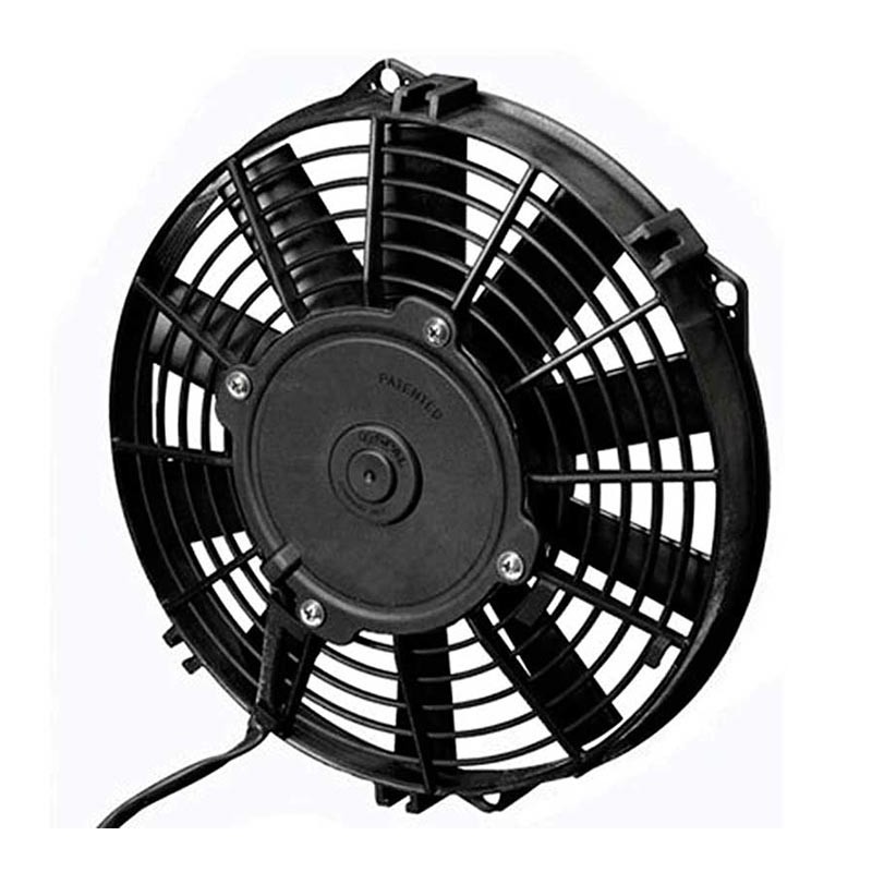 SPAL electric fans and accessories are built to meet the most rigorous cooling requirements needed for today's high performance automotive applications. SPAL fans are durable, reliable, and the choice of many NASCAR teams. SPAL offers a variety of high performance fans perfect for your motorcycle, ATV, automotive, and/or oil cooler applications. Manufactured from sturdy plastic, individually balanced for long service life, and most feature a fully sealed waterproof/dust proof motor for reliable performance in the most extreme conditions. SPAL fans can be mounted to any radiator with universal brackets and shrouds.Key Features:590 CFMPull Fan DesignStraight Style BladesLow Profile Motor DesignHeight; 9.72inWidth; 9.72inDepth; 2.05inFeatures fully sealed motor to IP68 standards making them waterproof/dust proof12V