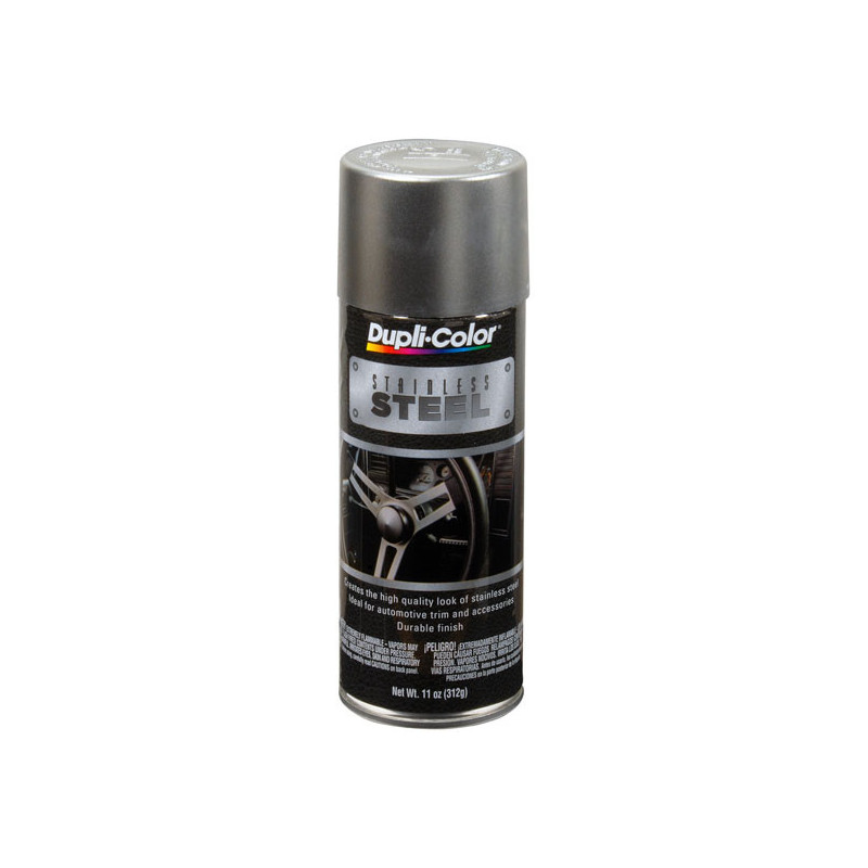 Dupli-Color Stainless Steel Coating provides the brilliant and popular look of stainless steel to automotive accessories, such as trim, grills, and bumpers. Stainless Steel Coating dries quickly to a durable finish and resists high temperatures allowing for underhood applications. Features excellent adhesion to metal, wood, iron, glass, and most other surfaces.