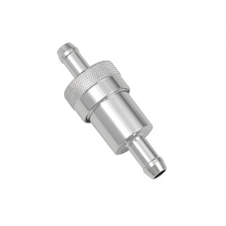 This is a show quality chrome plated steel fuel filter. Our fuel filter features a bronze element, and 3/8 inlet, and outlet.