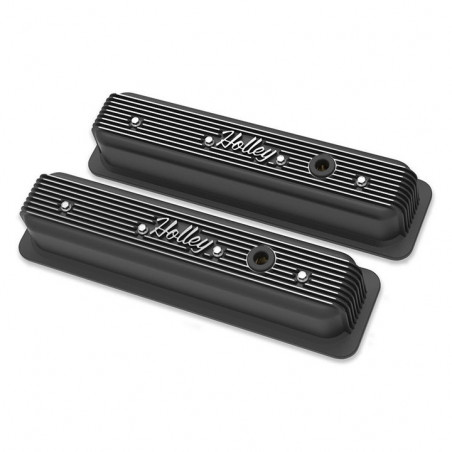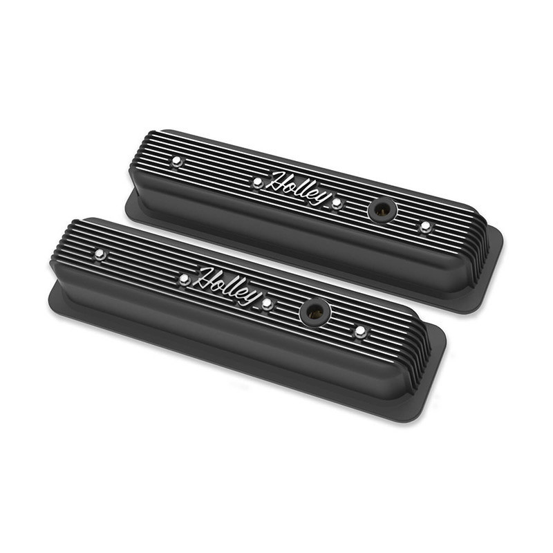 Holley is pleased to expand our Vintage Series line to now include a valve cover option for Small Block Chevys with center bolt heads. The Vintage Series family of die-cast aluminum dress up products features a classically styled finned design and a retro-style Holley script brandmark. These valve covers are standard height (3.5" overall) with pre-installed internal baffling, and come in a variety of colors and finishes for your unique application. Each set also includes a basic oil fill plug, a PCV grommet, and a polished mounting hardware set. Make your Monte Carlos engine a statement piece with Holley's Vintage Series dress up accessories!Features:Designed to fit all Small Block Chevy applications with center bolt style cylinder heads - polished mounting hardware includedDie-cast aluminum construction ensures high detail and reduces the opportunity for warping of the valve cover flange and oil leaksEmissions compliant valve covers include pre-installed internal oil baffles as well as an oil fill plug and PCV grommetSpecs:Application:Small Block ChevyBaffle Included:YesBolt Pattern:Center BoltFinish:Satin Black MachinedGaskets Included:NoGromment(s) Included:YesHeight:3.4"Material:Cast AluminumMounting Hardware Included:YesWarranty:Limited 90 Day