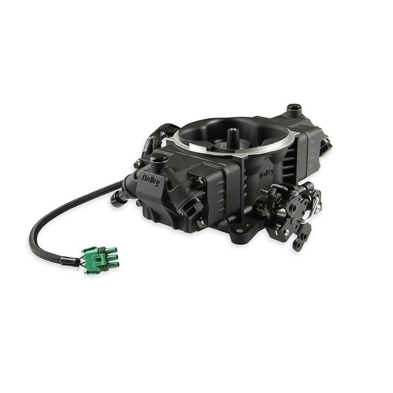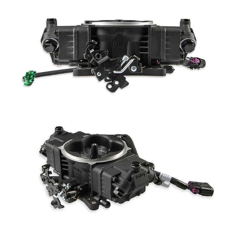 The Holley EFI Terminator X Stealth 4150 EFI system from Holley features 4, 100LB/HR Fuel Injectors capable of supporting up to 650 HP naturally aspirated or 600 HP on forced induction applications. The Holley EFI Terminator X ECU features fuel maps that self-learn and integrated ignition timing control, yielding improved idle stability, drivability, and horsepower at wide-open throttle! Did we mention that the Stealth 4150 also includes transmission kick down provisions for GM TH350/400, 200R4/700R4 and Ford C4/C6 applications? Holley EFI Terminator X Max kits provide plug and play Transmission control for GM 4L60 and 4L80 Transmissions.Features:Holley EFI Terminator X Stealth 4150 Kits for either 24x or 58x LS enginesSupports up to 650HP with Four 100lb./hr. InjectorsHolley EFI Terminator X Max kits provide plug and play Transmission control for GM TransmissionsInternal 1bar MAP sensor, built into the Holley EFI Terminator X ECU.All of the wiring exits below the fuel injector bowls, for a completely stealth installationAir entry machined to fit most stock style air cleaners with air cleaner locator provisionsExternal fuel pressure regulator required, set to a base pressure of 58.5 PSI, such as 12-886Integrated ignition timing control Plug and play with factory LS coil sub harness and OEM LS coils no external boxes/modules needed to run Coil Near PlugHigh Resolution Full Color Touchscreen for Initial Setup, Tuning, and Gauge DisplaysSimple Calibration Wizard (answer a few questions about your engine and it creates the base map, then starts tuning on its own!) - NO laptop required!Self-tuning ECU means you dont have to be a computer/tuning wiz to have EFI!4 Inputs 12v, Ground, 5v, and Frequency, for things such as additional pressure sensors, or activation triggers for nitrous activation, or a trans brake (Fuel and Oil Pressure Inputs are pre-terminated)4 Outputs Ground, PWM - , for accessories such as; fans, boost control, nitrous control, IAC Kit, and MoreThe included Genuine Bosch LSU 4.9 Wideband Oxygen Sensor provides real-time Fuel Map Learn!OEM Style TPS/IAC, for years of dependable serviceAvailable in 3 finishes: Shiny, Black and GoldCompatible with Holley EFI digital dashes, gauges and fuel system accessories
