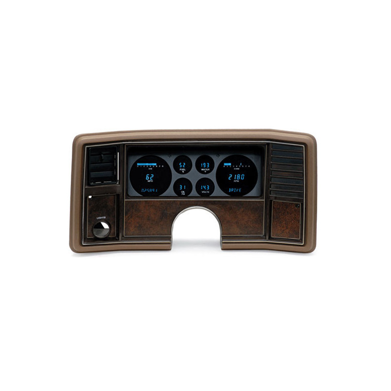 Dakota Digital Series III instrument systems offer the latest technologies and features for your custom Chevrolet. High brightness vacuum fluorescent displays provide a lifetime of trouble free use while offering increased accuracy and features!Digital displays included with this instrument system:Speedometer (0-255 MPH or KPH)TachometerOil PressureWater TempVoltmeterFuel LevelAlso shown is: Odometer, Trip Odometer, Resettable Service Odometer and HourmeterNecessary sensors included for: Oil Pressure (1/8 in. NPT)Water Temp (1/8 in. with bushings for 1/4 in, 3/8 in, 1/2 in. NPT)Speedometer Pulse GeneratorSeveral performance calculations include: 0-60 MPH (0-100 KPH) timer, 1/4 mile timer, 1/4 mile speed display, High Speed recall and High RPM recall.Various Indicators can also be displayed such as: Turn Signals, High Beam, Check Engine, Parking Brake, Cruise Control, 4x4 (when equipped), Wait to Start (when equipped).Automatic Transmission gear indicator is also included, which will display the full name (ie: Park, Overdrive, etc.) of the current gear. Utilizing the gear position indicator will require the use of a Dakota Digital GSS-1978-1988 sending unit.Dakota Digital instruments systems also include a Demonstration Mode which will cycle the instrument readouts while the vehicle is standing still. This is especially popular while the vehicle is on display at a show, event or simply displaying the instrument system.Full Metric conversions will cycle between MPH or KPH with the press of a button. If full (Celsius ; KPH) metric instrument systems are required, please specify upon ordering.For LS engine packages, a 12mm 12x 1.5 sender is included along with the 1/8 in. NPT oil pressure with bushings to adapt to metric threads as well as a mechanical > electrical pulse generator for older mechanical transmissions.Fuel level gauge can read either OEM sensor, or any aftermarket style currently available. A universal fuel level sender, SEN-06-1, can be purchased from Dakota Digital if necessary.Fully programmable speedometer for various tire sizes, rear-end gearing combinations, etc.Built-in dimmer will reduce the display intensity as headlights or parking lights are activated.Fully adjustable warning points alert the user of potential vehicle problems.Dakota Digital Instrument systems are normally shipped from the factory with '0' miles on the odometer and offer a one-time user adjustable odometer. Within the first 100 miles of operation, the odometer can be preset by the installer to whatever mileage they prefer. Once this has been set, or 100 miles have been logged on the odometer, this functionality goes away. This can always be reset at the factory and lessens the potential for tampering down the road.