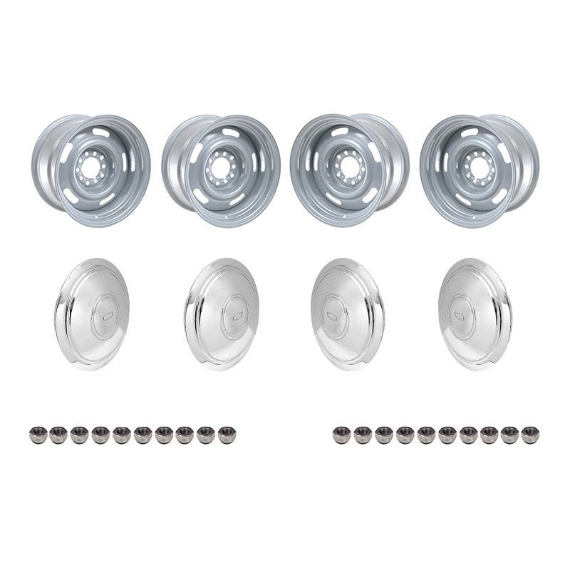 Why sift the junkyards for used Monte Carlo wheels or try to repair originals when you can add a complete set of wheels, caps, and trim rings to your Monte Carlo for a special low price? This Monte Carlo parts kit includes (4) powder coated argent silver rims, (4) Chevrolet Police Style Caps, (4) center cap retainers, and (20) lug nuts. This means you get everything that you need to get your muscle car rolling in style.Includes:(20) Acorn Style Lug Nut 7/16 Inch(1) Center CapsI4) Rally Wheels 15 X 7, without Disc Brakes
