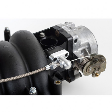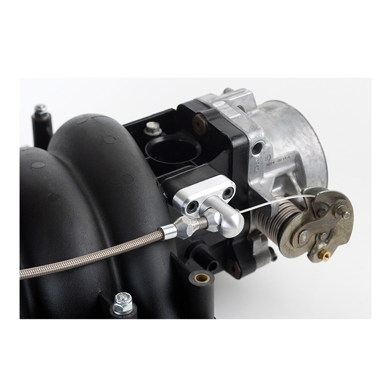 The billet aluminum bracket mounts to the side of the LS1 manifold and is available with a single stud for throttle only or a double stud to add a cruise control cable.