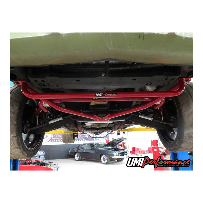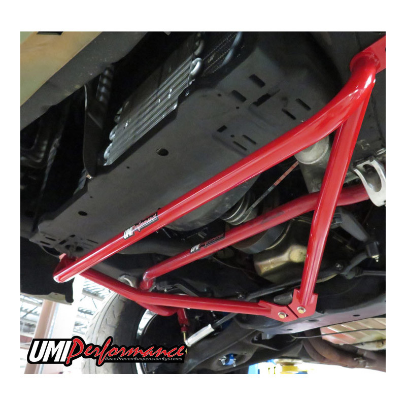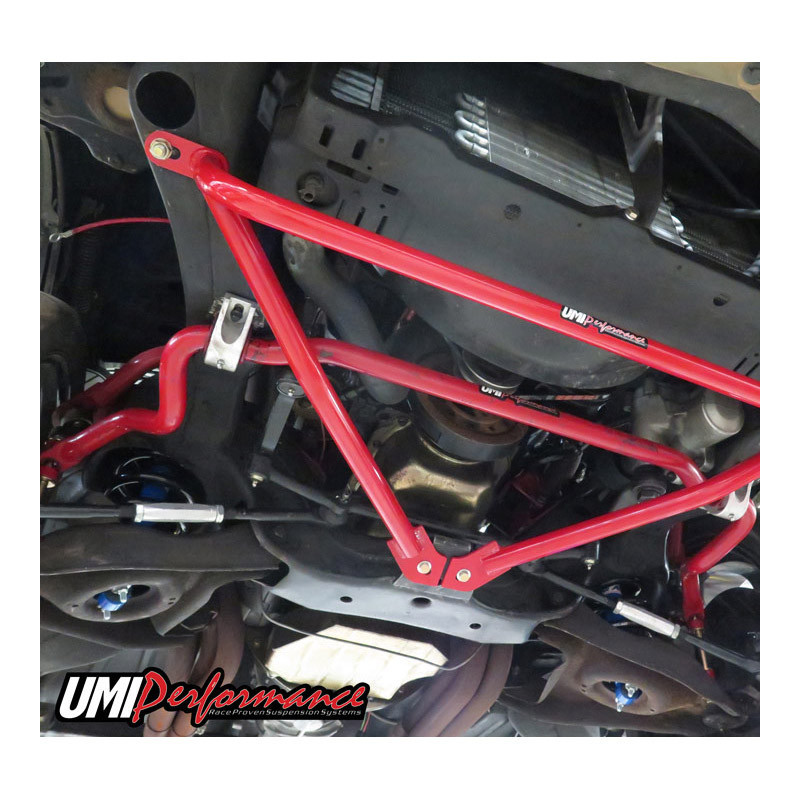 NOT CURRENTLY APPROVED FOR GRAND NATIONAL PLATFORM WITH INTERCOOLER. OCCASIONAL GRINDING MAY BE REQUIRED DUE TO GM G-BODY PRODUCT TOLERANCES. UMI USED FIVE TEST CARS FOR FITMENT IN A VARIETY OF YEARS AND NO GRINDING WAS REQUIRED.