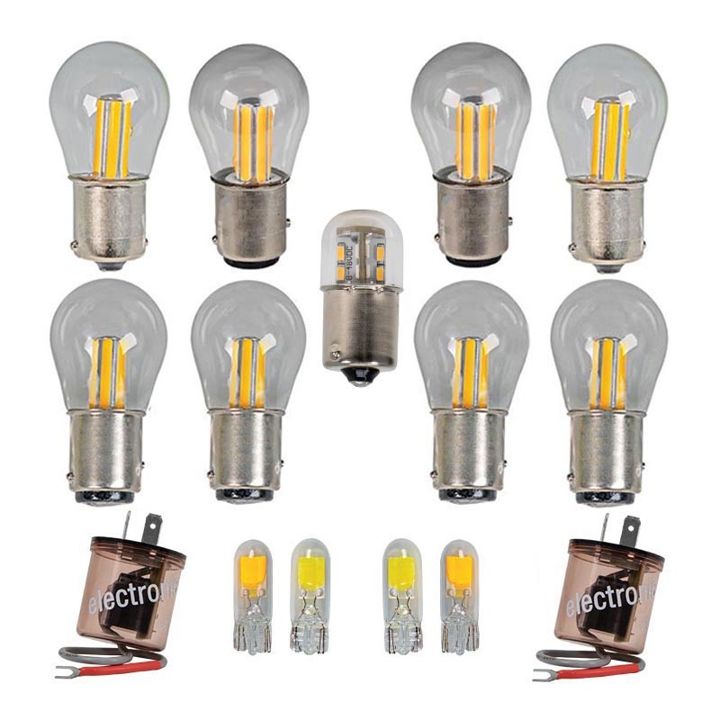 Upgrade your vehicle?s exterior lighting with the Addictive Flow Exterior LED Bulb Kit. This complete set includes LED replacements for side markers, backup lights, park/turn signals, tail/stop lights, and the license plate lamp, along with two LED flashers. Designed to deliver improved brightness, efficiency, and longevity, this kit modernizes the exterior lighting of your vehicle.