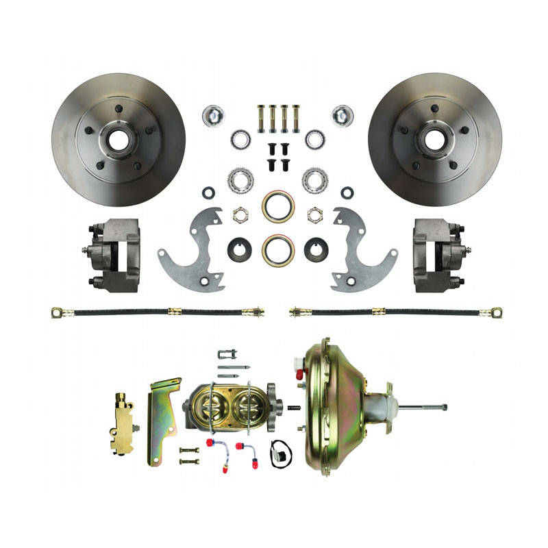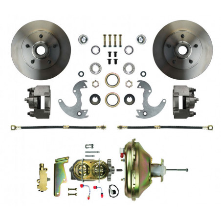 Upgrade your 1968-1974 Nova to front power disc brakes while maintaining your factory 14 inch wheels with this kit from The Right Stuff Detailing. This kit bolts directly onto the stock drum brake spindles using a proprietary rotor, and fits any 14 inch wheel. Installs in half the time of other front disc brake conversion kits, and you won't even need an alignment afterwards.This kit includes:9 inch power boosterOEM style master cylinderCombo valveRotorsLoaded calipersBrackets and hardware.