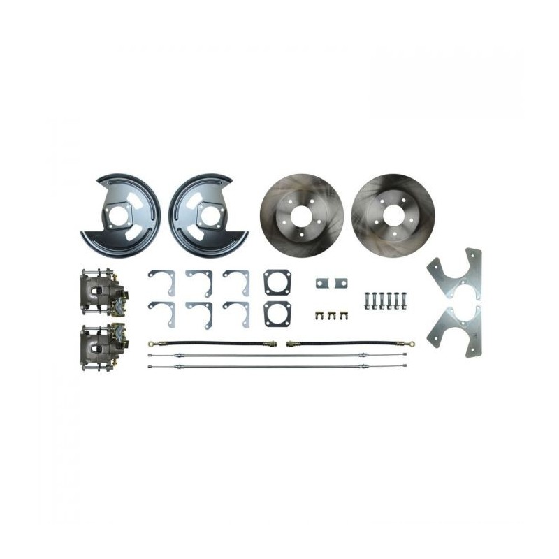 The Right Stuff AFXRD01N Street Series Conversion Kits have the most complete high quality component offerings in the industry. Numerous component and finish upgrade options are available to allow you to make your braking system your own. Explore our Street Series kit options today.Rear Disc Brake Conversion Kit with Standard Rotors, Natural Finish Calipers, Hoses, E-Brake Cables & more for 1962-1967 Chevy II Nova with Non-Staggered Shocks.This kit includes:11 Inch Rear RotorsNew Loaded Rear CalipersFlex HosesCaliper Brackets, Spacers, & HardwareWeld-on Hose BracketsBacking PlatesParking Brake Cables