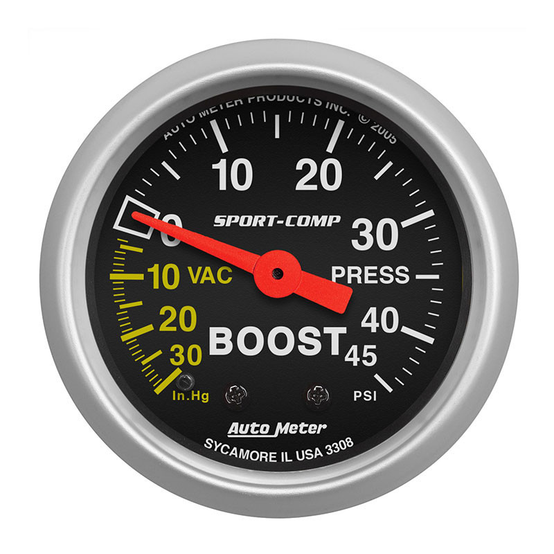 1962-1979 Nova AutoMeter 2-1/16in. Boost/Vacuum Gauge, 30 In Hg/45 PSI, Sport-Comp 3308