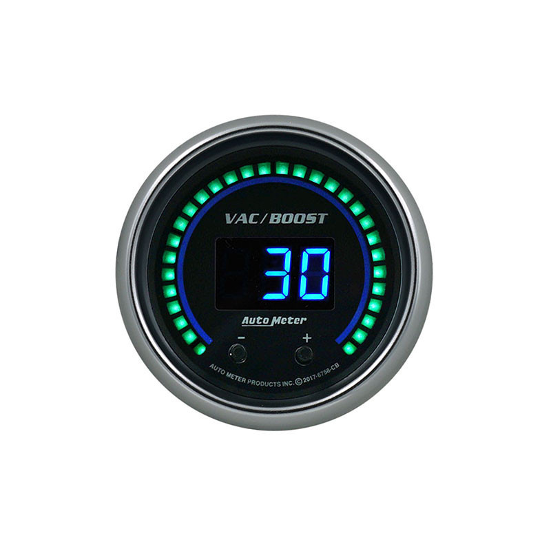 Sometimes the amount of data you want to see and the amount of space you have to display it aren't always compatible. New Elite Digital gauges from AutoMeter provide you with options to help optimize your instrumentation without compromising on critical performance data that you need to keep your Nova operating at its best. This combination Boost and Fluid Pressure gauge allows you to monitor 2 independent readings within a single 2-1/16in. gauge which is matched to coordinate with popular AutoMeter designs. Featuring a bright LED seven segment display and 30 radial LED indicators, this digital instrument provides you with the ability to toggle between various display views in order to see each channel individually, a combination of both such as Channel 1 values displayed on the radial band and Channel 2 values reading out as a digital number in the center of the gauge, or a differential reading which indicates the difference between the two making this product ideal for compairing boost and fuel pressures on your vehicles engine to ensure engine performance controls are functioning as intended. Custom alarm points can also be programmed for each channel which can be used to trigger outputs to activate other devices such as lights or buzzers, as well as causing the onscreen gauge display to blink in order to draw the driver's attention to critical readings. User selectable units for imperial and metric measures.Features:AutoMeter's E-Z View Digital LED Display System which maximizes readability and minimizes distracting high speed digit changes12 and 16 volt compatible, well-suited with nearly every street car or race car electrical systemIncludes data acquisition grade solid-state MAP Sensor, providing unmatched accuracy and durability even in the harshest environments. Additional fluid pressure sensor for second channel monitoring sold separately.Gauge kit includes MAP Sensor, T-Fitting, nylon tubing, vacuum fittings, wiring harness, mounting hardware, and detailed instructions for installation View each pressure input channel independently on both radial display and numeric readout, combine readings assigning one parameter to each portion of the display, or view the differential pressure between monitored channels.Program unique alarms for each channel to alert the driver to critical conditions. When the programmed setting has been exceeded, the display will flash the corresponding portion to indicate the area of concern.Programmable Pro-Control outputs allow your gauge to activate other devices on your vehicle based upon readings of a specific parameter. Use these outputs to trigger lights, buzzers, pumps, fans, switches, and more!Displays pressure values to the nearest PSI or 0.1 BAR. User selectable units allows for display of data in PSI or BAR.High Peak Pressure recall function available for each channel.0-5V analog voltage output provided for each channel to allow data to be fed to other onboard vehicle systems such as dataloggers or engine control units (ECU).
