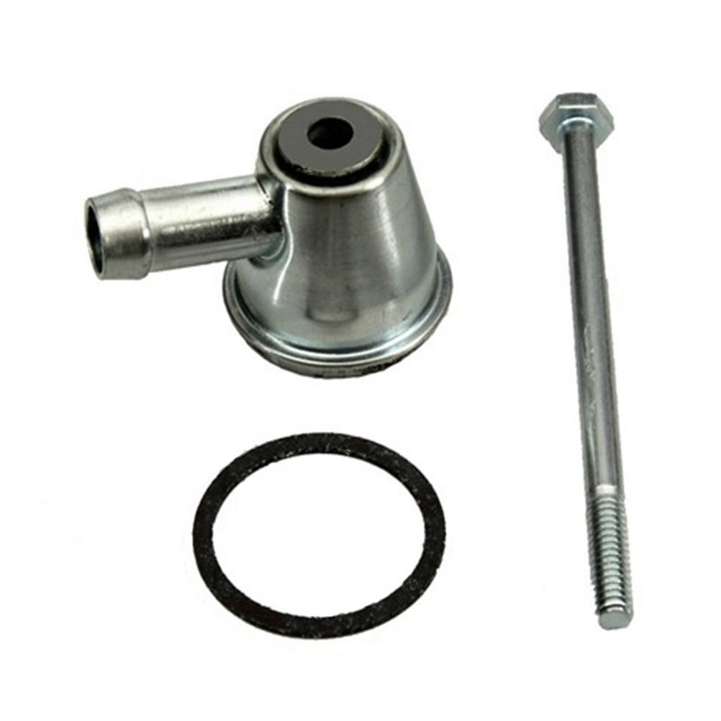 1962-1967 Nova crank case vent tube. This installs next to the distributor at the the rear of the engine block. Made out of correct OEM thickness stamped steel. Exact fit, superior workmanship. Crankcase vent assembly includes, vent cap with washer & seal, gasket and bolt. Vent cap requires 1/2 inch hose. No for use on SHP engines, or block that did not have the provision.