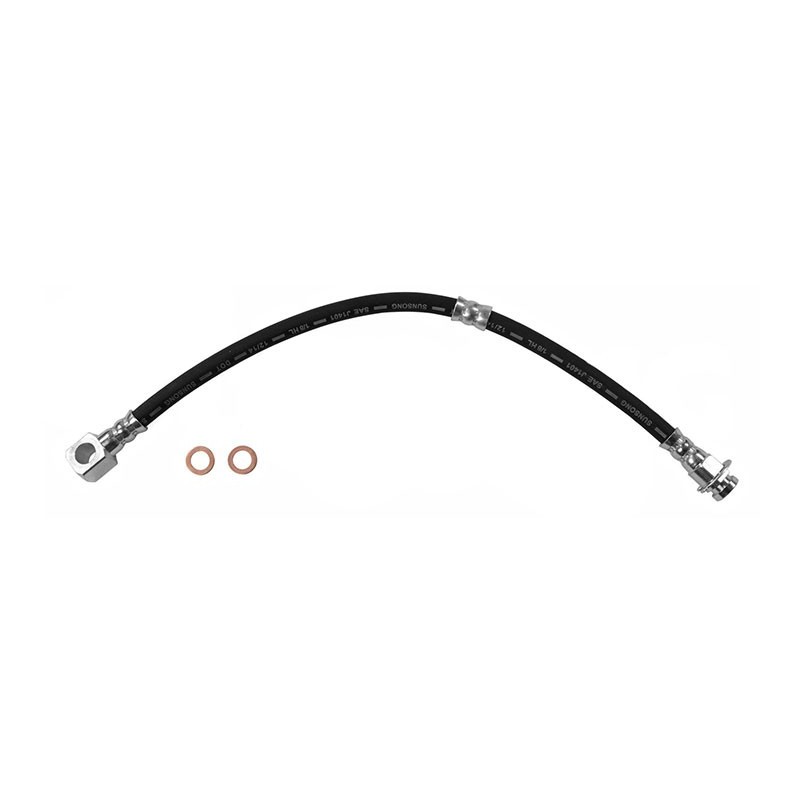 FRONT FLEX HOSES PROVIDE A FLEXIBLE CONNECTION FROM THE BODY OR FRAME TO THE FRONT CALIPERS OR WHEEL CYLINDERS AS THEY MOVE DURING SUSPENSION TRAVEL.