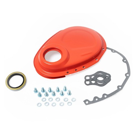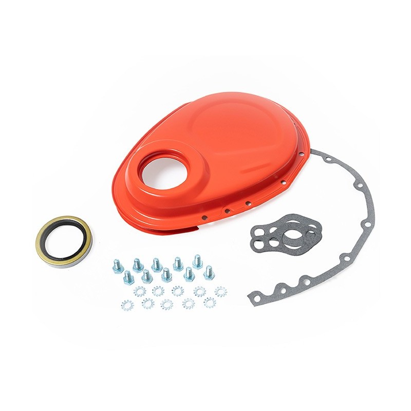 LONG WATER PUMP APPLICATIONS. THESE COVERS MAY NOT WORK WITH SOME DOUBLE ROLLER TIMING CHAINS. CHECK CLEARANCE BEFORE STARTING ENGINE. DOUBLING OF THE GASKETS, OR SHIMS MAY BE REQUIRED TO USE THIS COVER WITH A SHORT WATER PUMP.