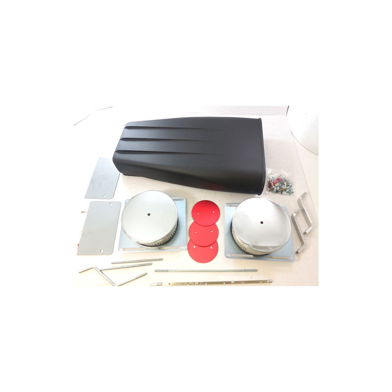 This aluminum street hood scoop is designed with three round inlet butterfiles with reversible flaps and give your street machine a classic look. these street hood scoops are machined from aluminum castings that are beautifully finished in black for a great look! These hood scoops fit either single or dual quad carb applications and have an adjustable centerline that measures 7.75 to 9.25 inches. Each street rod hood scoop includes a 6.375 inch x 2.5 inch element, mounting hardware and adapter plates for either dual or single application.