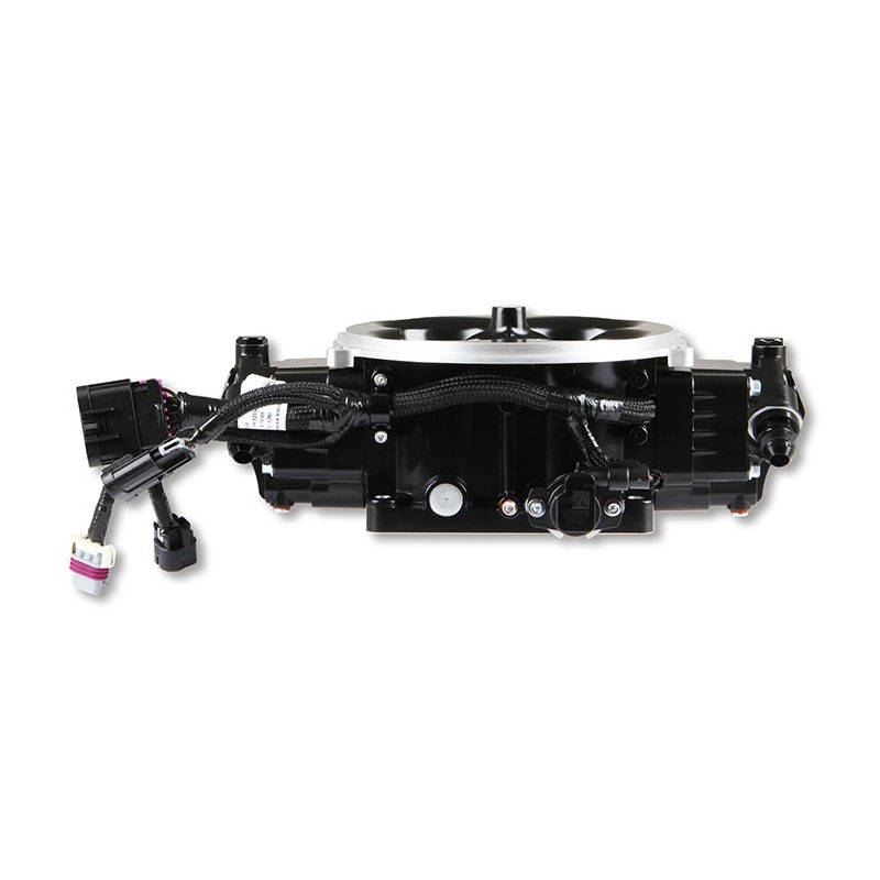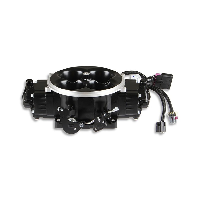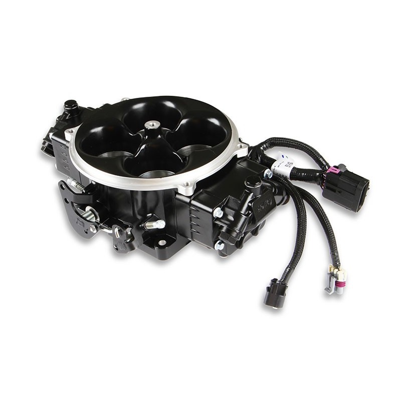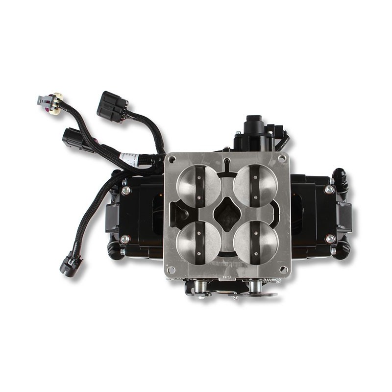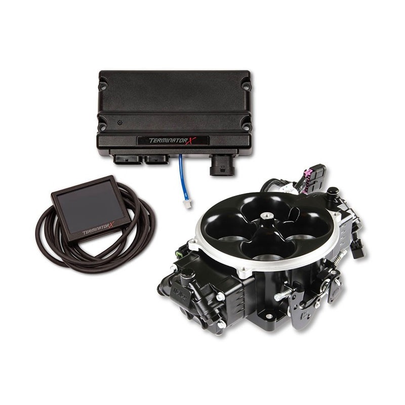 The Holley EFI Terminator X Stealth 4500 EFI system from Holley features 8, 100LB/HR Fuel Injectors capable of supporting up to 1500 HP naturally aspirated or 1250 HP on forced induction applications. The Holley EFI Terminator X ECU is capable of fuel map self-learning and ignition timing control, improving idle stability, drivability, and wide-open throttle horsepower! Designed to fit with Gen 3 Ultra Dominator air cleaners and fuel crossovers, allowing you to easily convert your 4500 equipped 800+ horsepower dragster or door car!Features:Bolt on 4500 Flange Carburetor ReplacementSupports up to 1500 HP Naturally Aspirated or 1250 HP Forced Induction with Eight 100 Lb/Hr Injectors2.125” Throttle Plates, Flow 1440 CFM for large cubic inch enginesGen 3 Ultra Dominator Style 4 Bolt Air Cleaner Flange offering a variety of air cleaner optionsExternal fuel pressure regulator required, such as 12-848Integrated ignition timing controlHigh Resolution Full Color Touchscreen for Initial Setup, Tuning, and Gauge DisplaysSimple Calibration Wizard (answer a few questions about your engine and it creates the base map, then starts tuning on its own!) - NO laptop required!Self-tuning ECU means you don’t have to be a computer/tuning wiz to have EFI!OEM Style TPS/IAC, for years of dependable service.Included weld-in O2 sensor bung for the exhaust ensures a leak free oxygen sensor installationBuilt in 1bar MAP Sensor, vacuum hose adapters included (1/8th – ¼ and 3/16ths) - or for Boosted applications, you can disable the internal MAP sensor, and utilize an external MAP Sensor, the harness comes with the connector terminated, making the installPlug and play with Holley EFI Accessories, such as the 12.3” and 6.86” Pro Dash; CAN EGT; and Digital Analog style EFI gaugesAvailable in 2 finishes, Shiny and Black