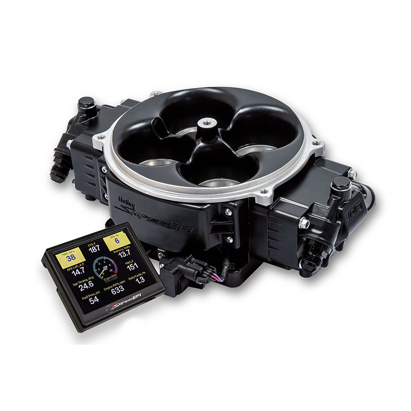 Introducing the Sniper Stealth 4500 EFI System! Wanting to convert your Dragster or Pro-street Nova to Fuel Injection? Look no further! The Sniper Stealth 4500 EFI system from Holley features 8, 100LB/HR Fuel Injectors capable of supporting 800 to 1500 HP naturally aspirated, or 800-1250 HP on forced induction applications. The Sniper Stealth 4500 also features multiple Input and Output options for sensor inputs and switched outputs to control external relays. This system also comes with a USB to CAN tuning cable and free downloadable Sniper EFI Software give you unlimited control of your engine.Features:Supports up to 1500 HP Naturally Aspirated or 1250 HP Forced Induction with Eight 100 Lb/Hr InjectorsCompatible with Draw through or Blow through forced induction applications2.125in Throttle Plates, Flow 1440 CFM for large cubic inch engines2.5Bar MAP SensorIntegrated ignition timing controlProgrammable launch control via 2-step and timing retard. Both can be triggered by a trans-brake inputGen 3 Ultra Dominator Style 4 Bolt Air Cleaner Flange-8AN Fuel InletsHigh Resolution Full Color Touchscreen for Initial Setup, Tuning, and Gauge DisplaysSimple Calibration Wizard (Answer a few questions about your engine and it creates the base map, then starts tuning on its own!) - NO laptop requiredSelf-tuning ECU means you don