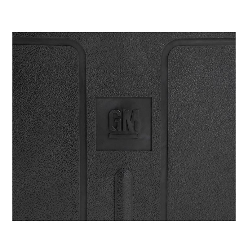 This is a set of exact reproduction front and rear Nova vinyl floor mats which feature the correct grain and raised GM logo.