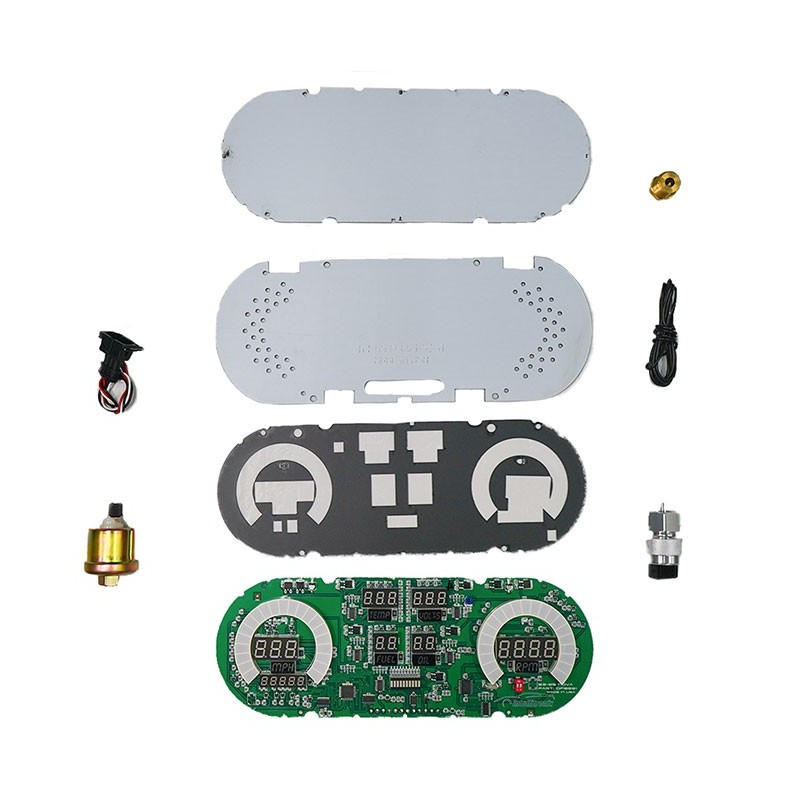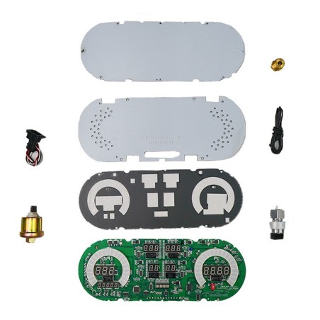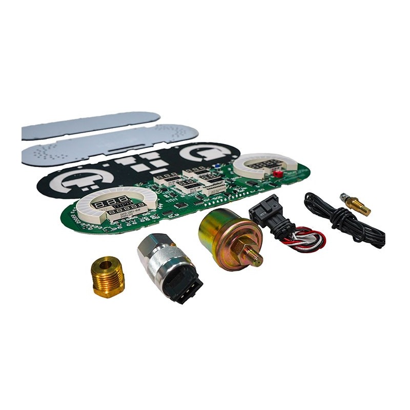 Feel the wind in your hair riding in your 1962-1965 Nova with a state-of-the-art LED Digital Replacement Gauge Panel from Intellitronix. This dash comes with direct fit printed circuit boards, custom fit smoked plexiglass faceplate, universal water temperature S8013, oil pressure S8434, and speedometer S9013 sending units including sender and sensor for vehicles without electronic transmission or cruise control, and instructions for installation. Features:Speedometer reads up to 255 mph and includes odometer, trip meter, one button calibration, 0-60 time, _ mile elapsed time and high-speed recall.Tachometer displays 0-9999 RPM in 100, 10, or 1 RPM increments (ex. 9900, 9990, 9999). Fully programmable for 1-2-4-6-8-10-12-cylinder engines.Water Temperature displays a range of 18-255°F.Oil Pressure shows a range of 0-99 PSI.Voltmeter displays 7.0-18.0 volts range. No sending unit requiredFuel Level reads 0-99% range in 1% increments. User programmable to work with Ford, GM, Chrysler, VDO, and aftermarket 240-33 ohm industry standard fuel senders.The panel features turn signals, high beam indicators and parking brake.