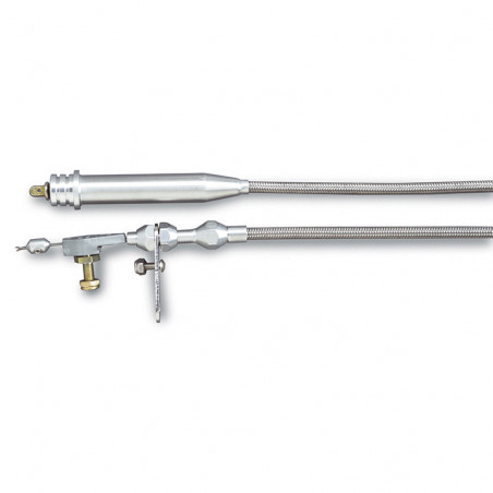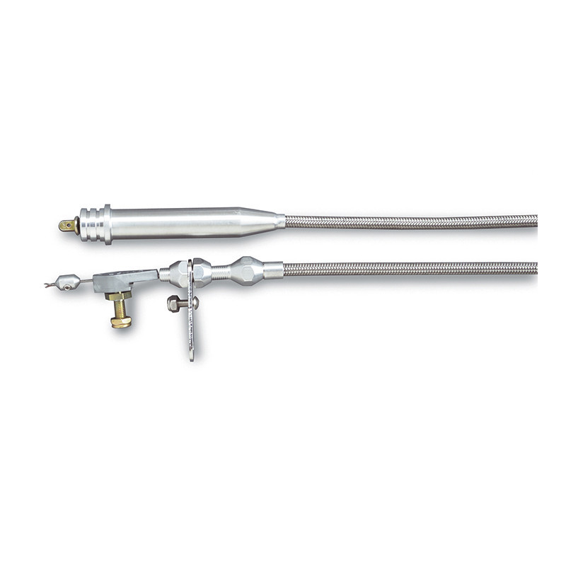 Lokars "U-Cut-to-Fit" Kickdown Cables are available in either stainless steel braided housing, black stainless steel braided housing or black housing. They are designed with a specially extruded liner for extended life of the cable. Kickdown features aluminum fittings with ferrule to eliminate frayed cable ends. Kickdowns are adaptable for all types of manifolds including tunnel ram, blower manifolds and Weber induction systems.