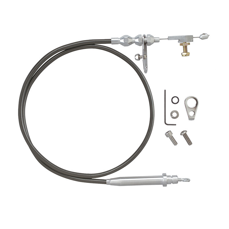 Lokars "U-Cut-to-Fit" Kickdown Cables are available in either stainless steel braided housing, black stainless steel braided housing or black housing. They are designed with a specially extruded liner for extended life of the cable. Kickdown features aluminum fittings with ferrule to eliminate frayed cable ends. Kickdowns are adaptable for all types of manifolds including tunnel ram, blower manifolds and Weber induction systems.
