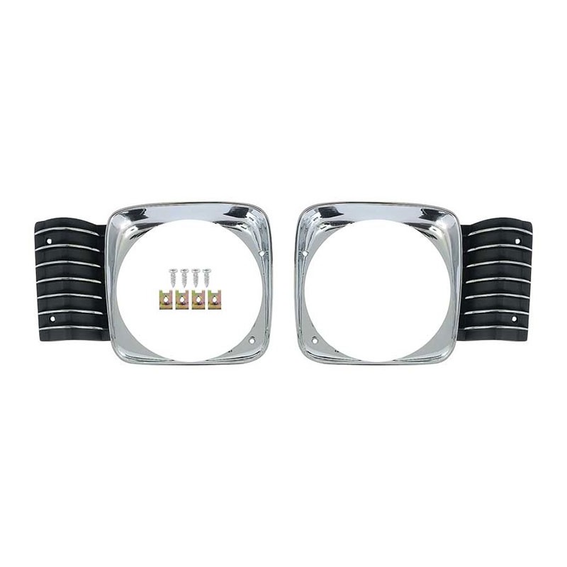 EACH BEZEL FEATURES A CHROME FINISH AROUND THE HEADLIGHT AND 7 HORIZONTAL CHROME RIBS TO MATE WITH 7 CHROME ACCENTS ON GRILL AS ORIGINAL FOR 1968 (EXCEPT SS MODELS).